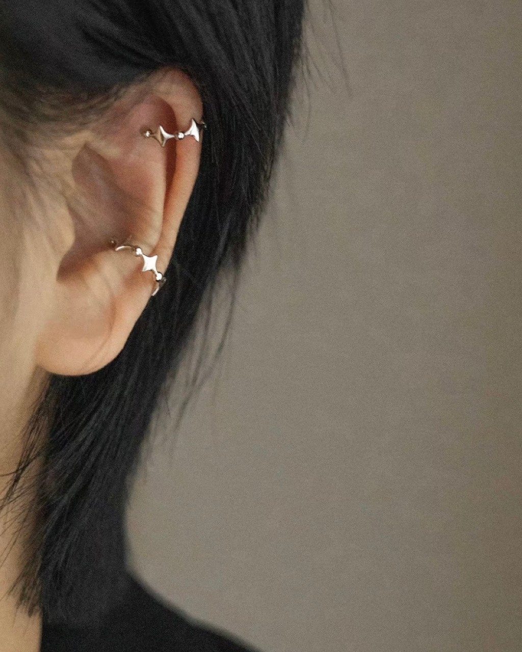 四芒星與圓珠錯落有致,帶點 Y2K 的復古俏皮,卻又意外地俐落好搭
