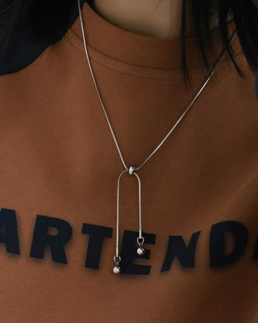 俐落的 U 型設計,讓金屬圓球在頸間自由流動
