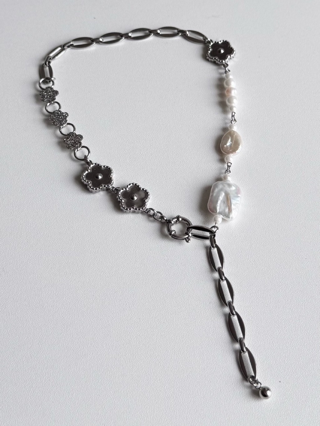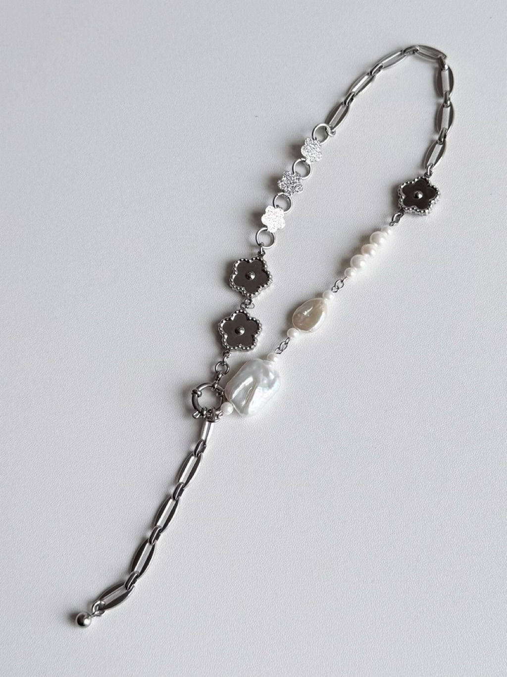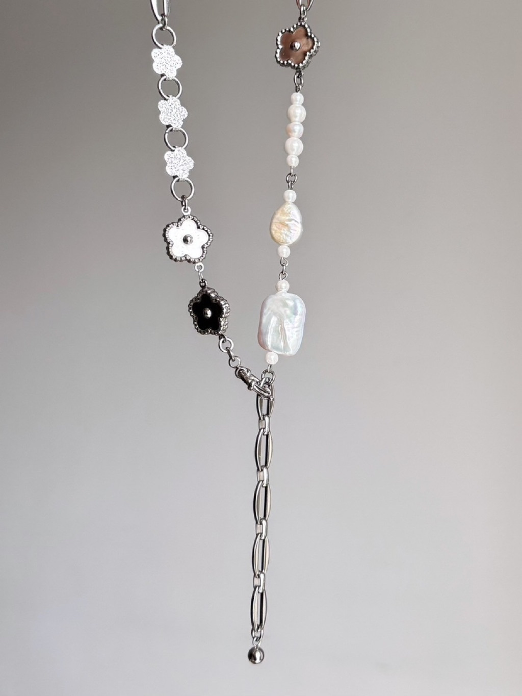 花花+天然淡水珍珠的前扣Y鏈拼接