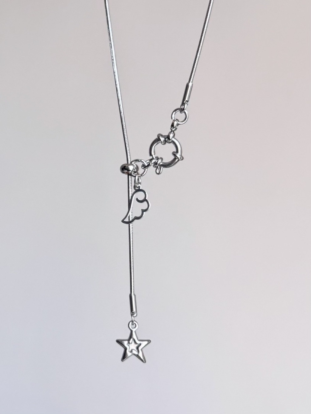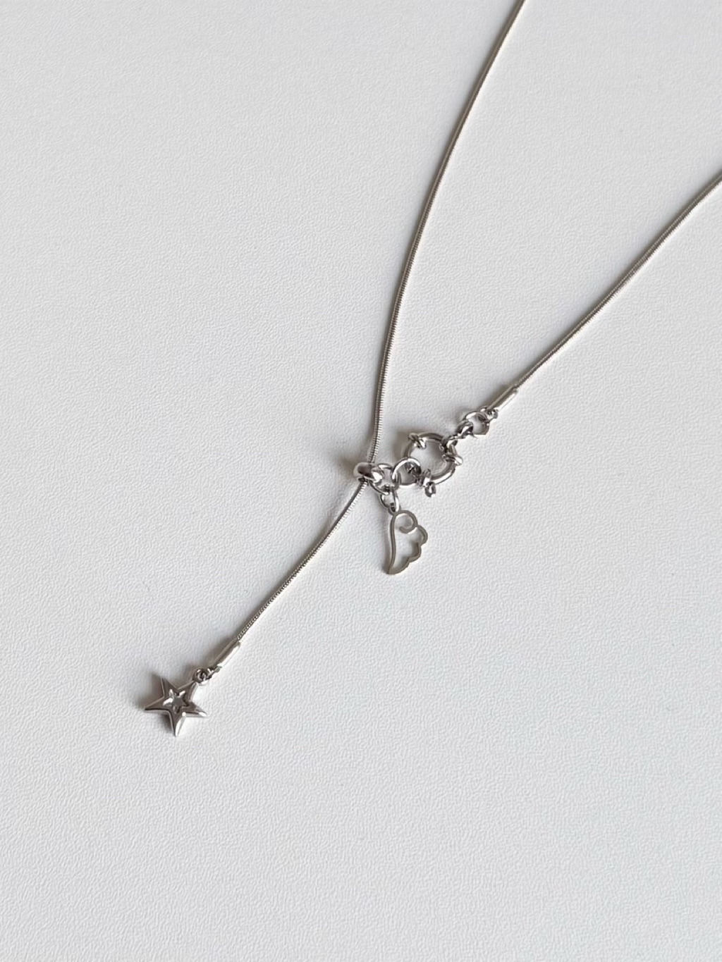 柔軟的蛇鍊像流動的銀河,繫著一顆不小心墜入凡間的小星與天使羽翼
